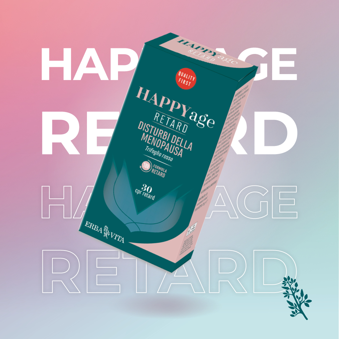 Happy Age Retard, a base di estratti vegetali e vitamina D3, è un sostegno naturale per l’organismo durante la delicata fase di passaggio alla menopausa, sviluppato con tecnologia Retard garantisce 18 ore di rilascio controllato per un assorbimento graduale di tutti i componenti.